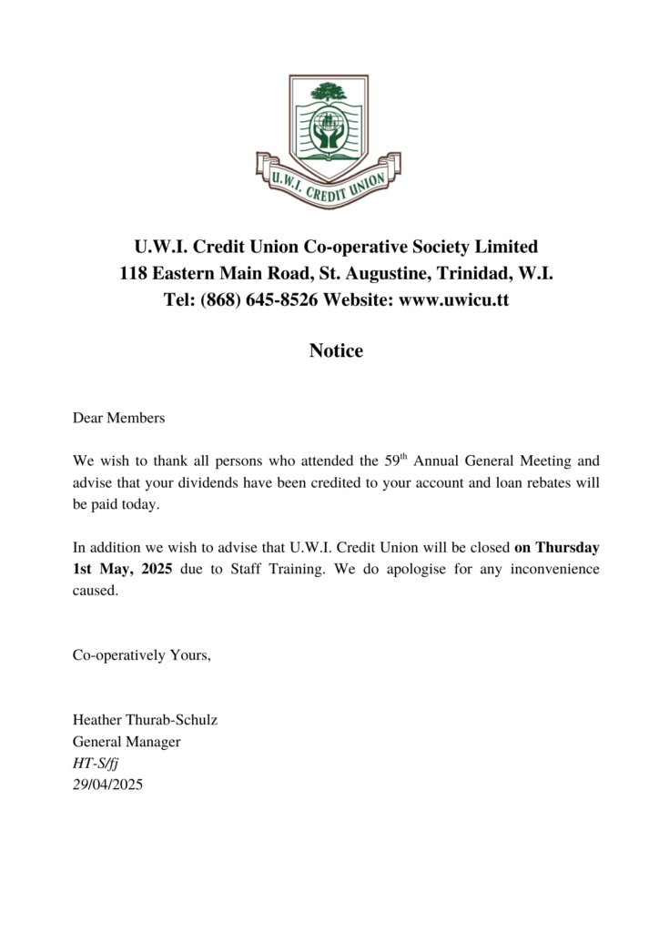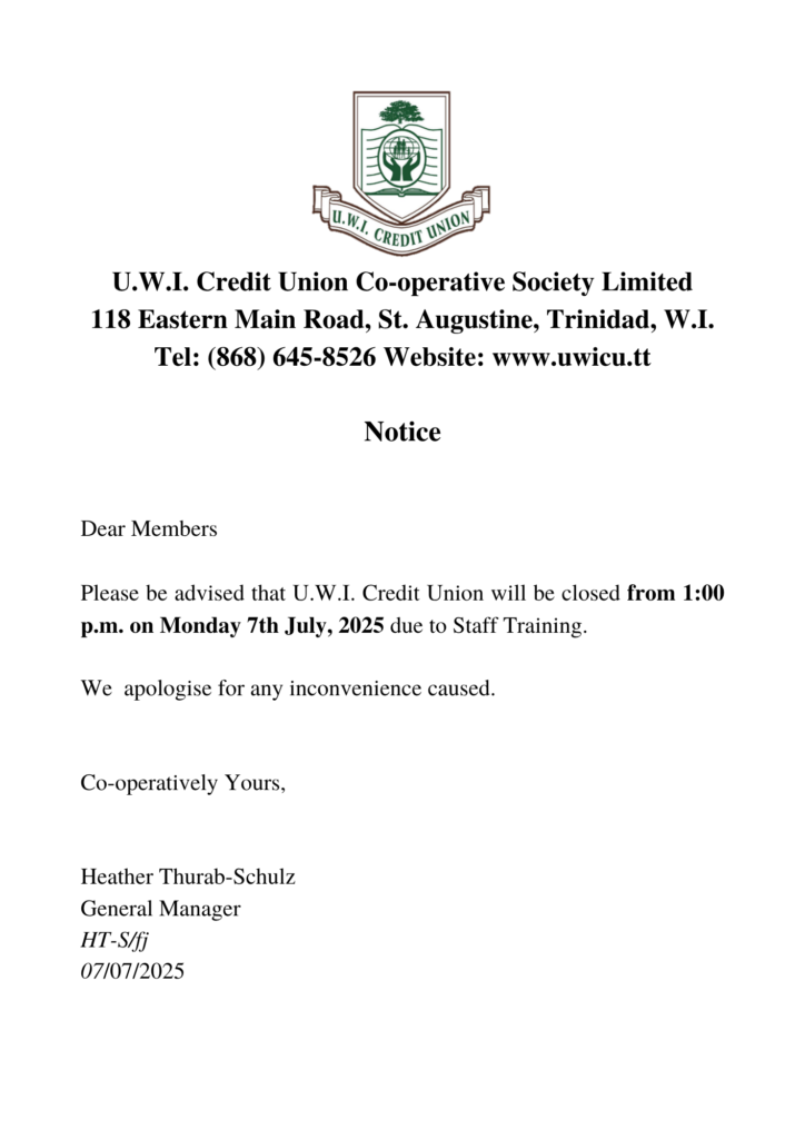 Membership application forms can be collected at U.W.I. Credit Union’s office and the required documents in the new member application guide can be located on our website www.uwicu.tt.
