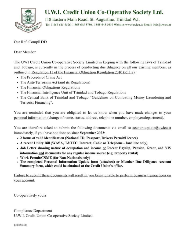 Competed forms and documents may be emailed to accountupdate@uwicu.tt